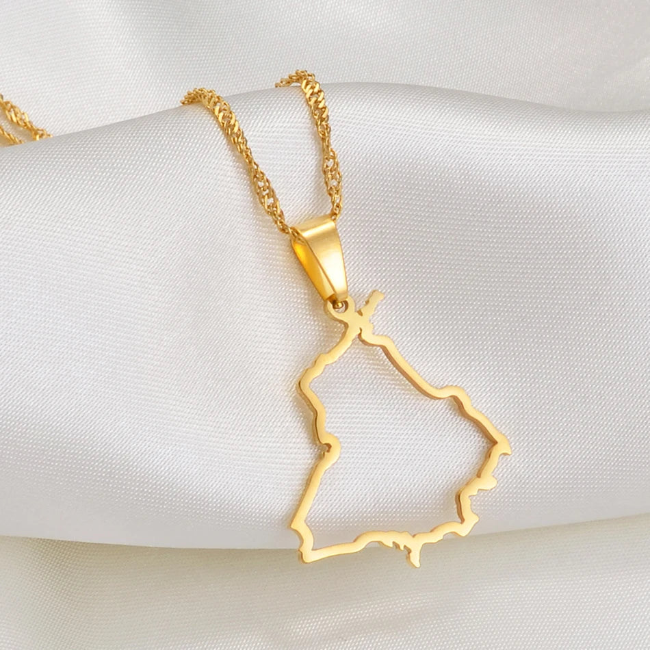 This product, the 1* PUNJAB OUTLINE PENDANT, is suitable for those who are looking for a stylish accessory for their next event. With its ethnic style and high-quality metal material, particularly STAINLESS STEEL, this necklace is a top-notch choice for any fashion-forward woman. Additionally, it is compatible with all neck sizes and comes from a reputable brand.